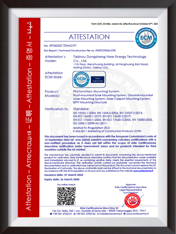 Taizhou Dongsheng New Energy Power Engineering Co., Ltd. poskytuje zákazníkům na místě pokyny pro instalaci, aby zajistila, že montáž bude stanovena standardizovaným způsobem a komponenty PV jsou přiměřeně uspořádány. Po instalaci se provádí strukturální inspekce a ladění systému a spolehlivost projektu se zlepšuje prostřednictvím přijímacího mechanismu třetích stran.