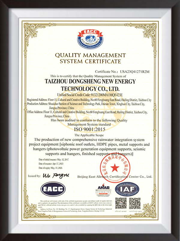 Dongsheng New Energy, založená v roce 2009, je high-tech podnik specializující se na design, výzkum a vývoj, výrobu a integrovanou instalaci distribuovaného systému výroby fotovoltaického energie. Je odhodlána poskytovat vhodná a spolehlivá podpůrná řešení a vysoce standardní fotovoltaické podpůrné výrobky pro solární fotovoltaické elektrárny. Společnost má vynikající designový tým, produkty prostřednictvím certifikace systému kvality ISO a má řadu patentovaných technologií, široce používaných ve střešní fotovoltaickém systému, automobilovém fotovoretním systému, rybářským systémem a světlým systémem. Společnost je založena na poskytnutí integrovaného zavedení režimu Advanced Management Režim, může zákazníkům poskytnout integrované systémové služby pro integrované fotovoltaické podpory z předčasného monitorování, návrhu, zadávání veřejných zakázek, pokyny pro pozdější údržbu, od jejího založení, pro tisíce domácích a zahraničních fotovoltaických systémových dat poskytujících spolehlivé produkty a řešení.